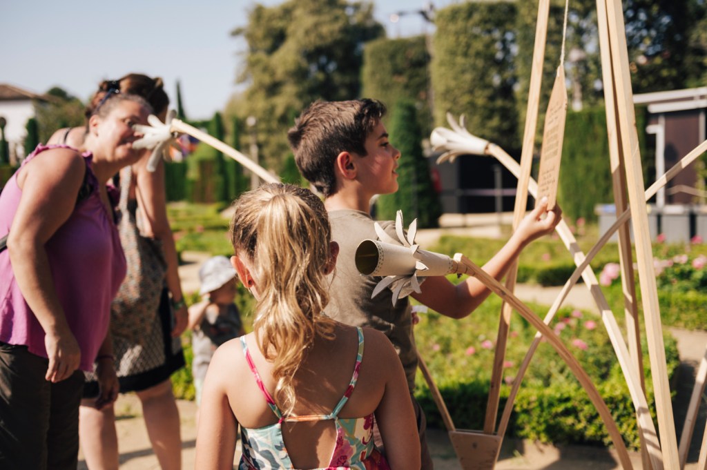 Si fóssim flors és una instal·lació que ens interroga sobre què passaria si fóssim flors, sobre els llocs que habitem, sobre l’extinció i l’esperança… Una instal·lació sostenible (els elements escenogràfics estan fets amb material reciclat i d’aprofitament) i inspirada en El Jardí Curiós de Peter Brown, El Jardí de les Delícies de Hieronymus Bosch i les incomptables hores de guerrillers de jardí que han viscut els seus creadors.